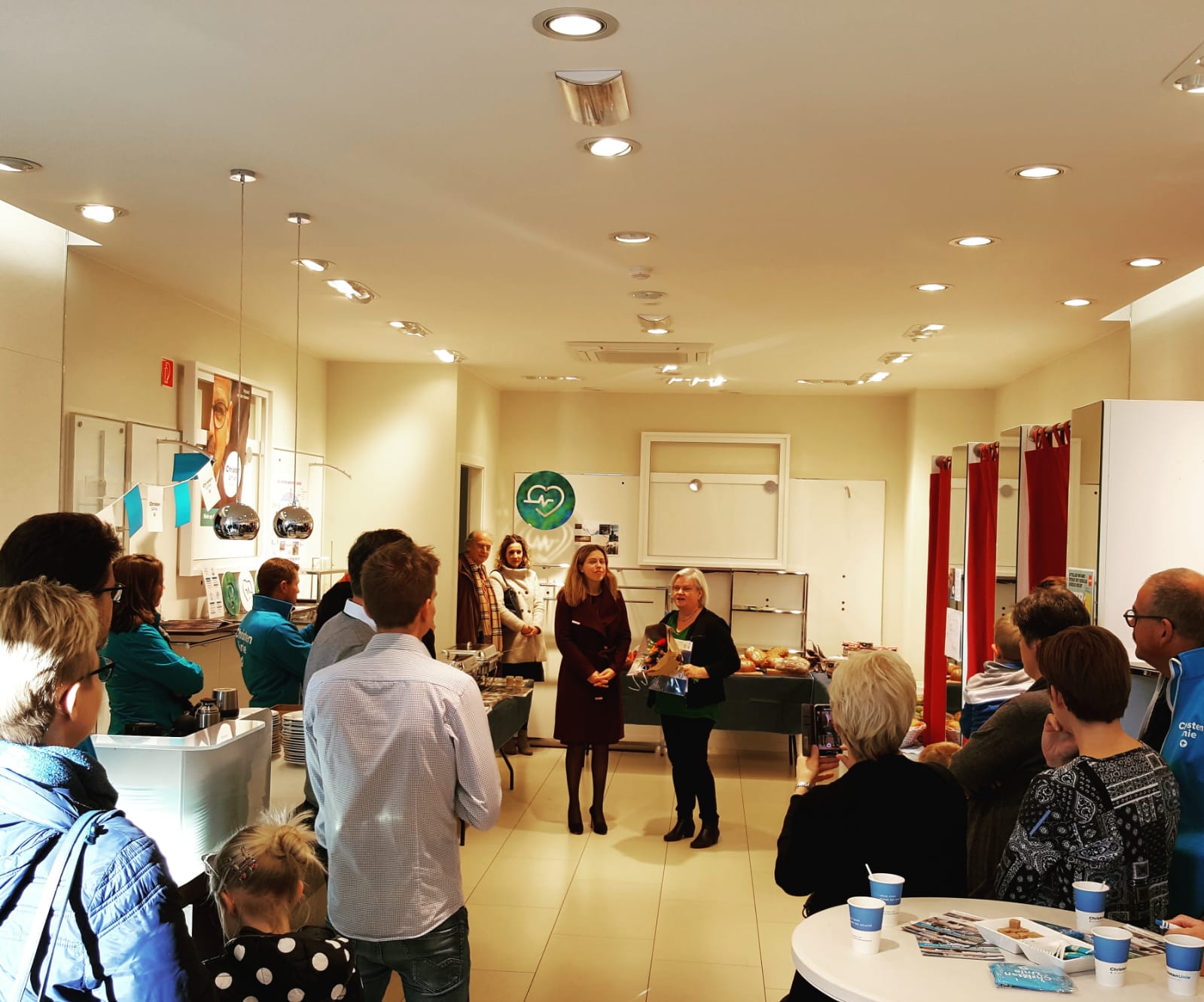 Zoals appels en appelsap uit Nieuwendijk, brood en honing uit Wijk en Aalburg, kaas uit Genderen en plantaardige balletjes uit Giessen. Op een bijzondere locatie: een ChristenUnie winkelpand voor één dag aan de Hoogstraat in Werkendam. Iedereen was welkom om binnen te lopen voor een bakje koffie of thee. Tijdens de lunch was ook minister Carola Schouten aanwezig. Zij ontving vooraf aan de lunch van VrouwenAltena de Toontje Sprenger Pluim uit handen van initiatiefneemster Hannie Visser.